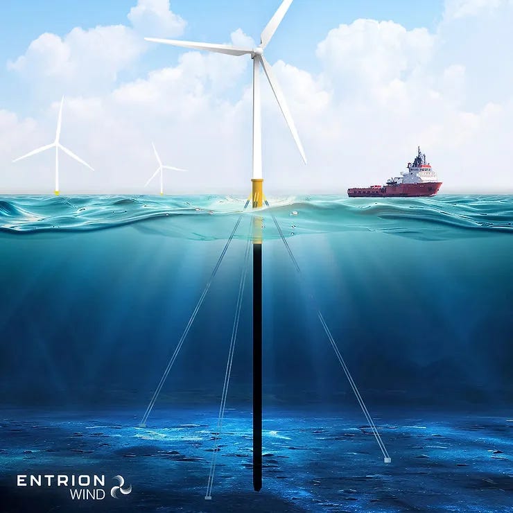 🌊 Entrion Wind patents a guyed monopile to bring fixed-bottom offshore wind to depths of 100 meters