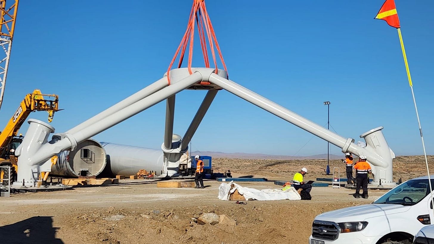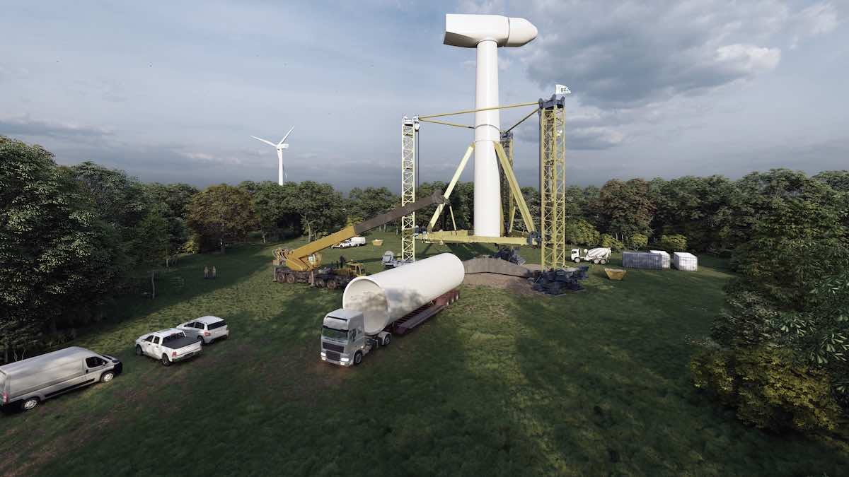 As for Skylift, the first commercial contract is currently underway in Namibia, where seven self-erecting tubular towers are being assembled with Goldwind GW165-6.2 MW turbines. Images shared by Innovent already offer a glimpse into the progress of the project.